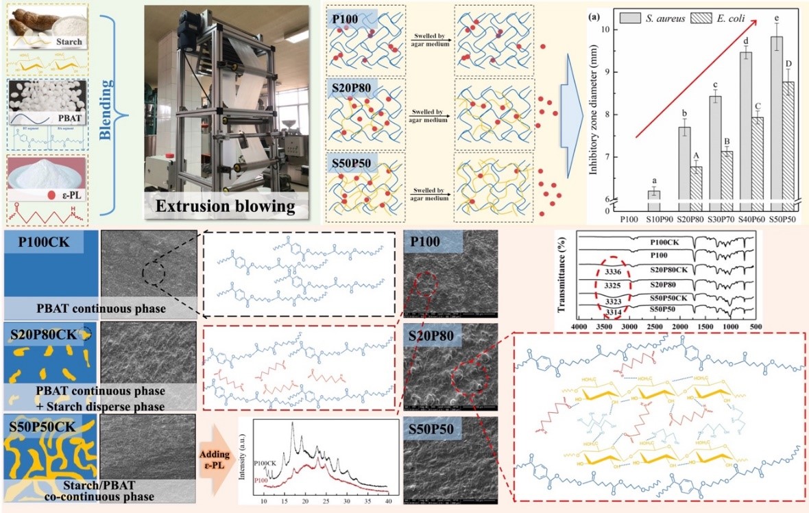 食品科学与工程学院侯汉学教授团队揭示淀粉/PBAT/ε-聚赖氨酸盐酸盐复合膜相结构与功能的关系